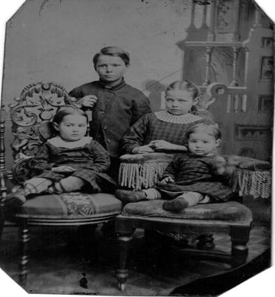 tintypes. One is marked Almeda Wage and Edward Marbaker, one Aunt Lucy Tubb and the last one that says Uncle Mort, Aunt Minta (Etta's mother), Aunt Emma, and Aunt Hettie. They are all children in the picture. Also a
