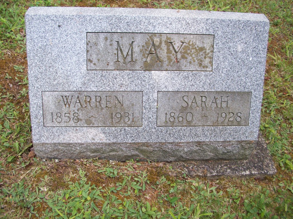 | May, Sarah | 1860 | 1928 | Wife of Warren. Maiden name Vargason. |