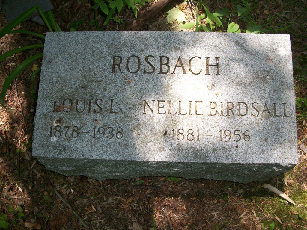 | Rosbach, Nellie Birdsall | 1881 | February * 1956 | Same stone as Louis