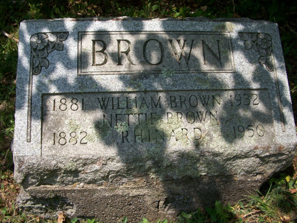 | Brown, Nettie Brown Rhinard | 1882 | 1950 | Same stone as William |
