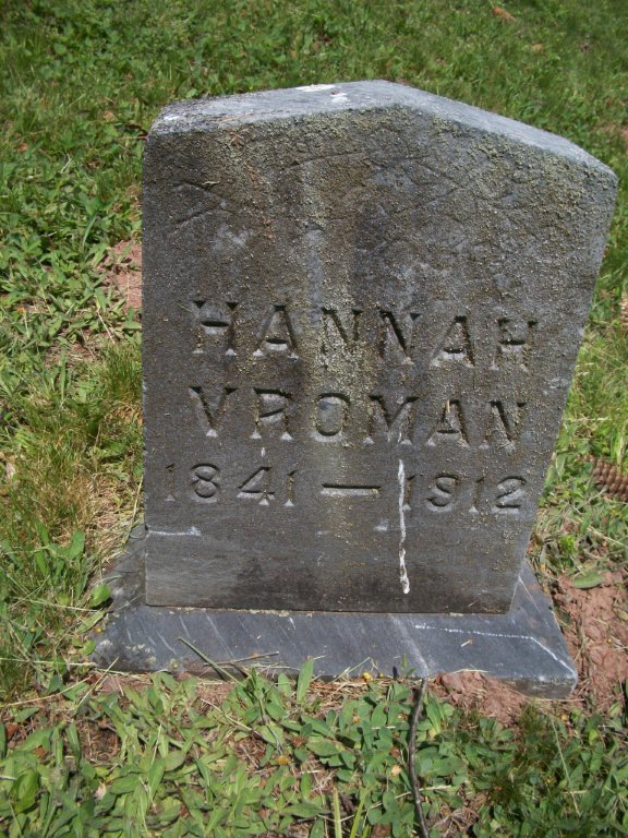 | Vroman, Hannah | 1841 | June 7 *, 1912 | * Per actual obituary |
