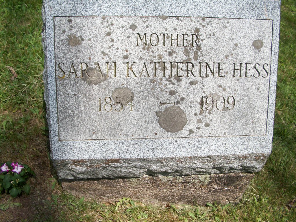 | Hess, Sarah Katherine | 1854 | September 14, * 1909 | * Per actual obituary |