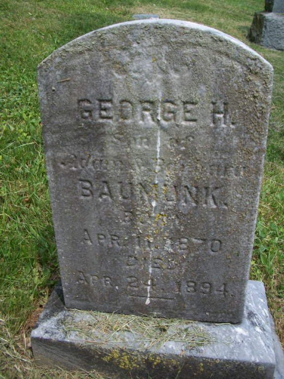 | Baumunk, George H. | 4/11/1870 | 4/24/1894 | Son of Adam & Barbara |