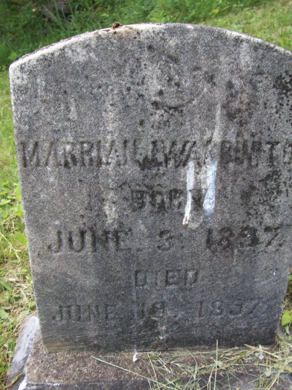 | May, Esther & Essie | 5/4/1895 | . | No headstone. Age 3 weeks. Daughters of Warren and Sarah (Vargason) May. Died from whooping cough. |