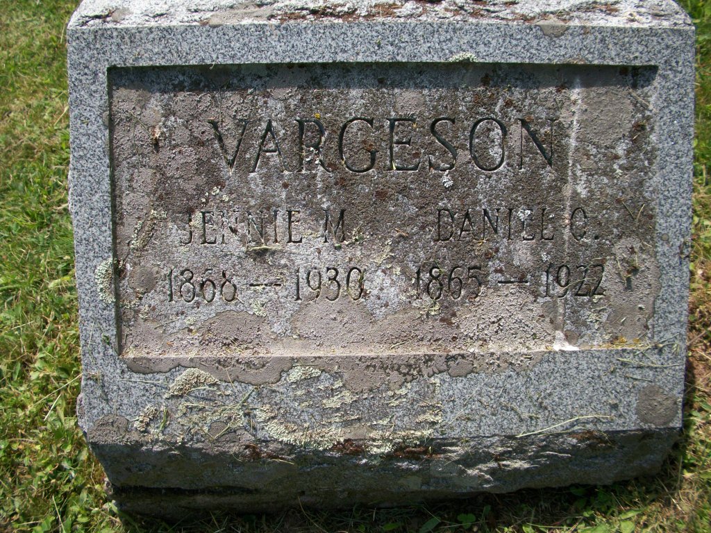 | Vargeson, Jennie May | 1868 | 1930 | Same stone as Daniel O. |