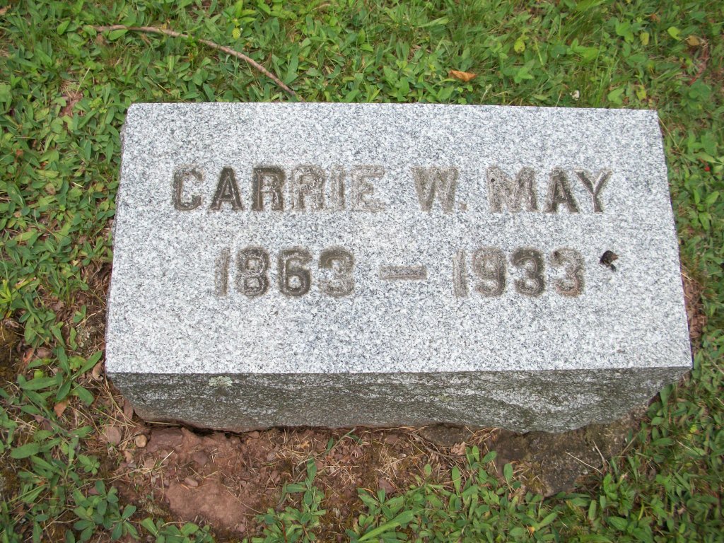 | May, Carrie W. | 1863 | 1933 | Carrie W. (Webster) May. Wife of Frank B. |