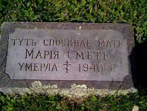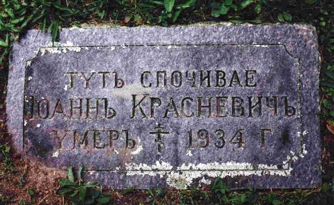 We are indebted to our local cemetery research team for the transcription of the "New" cemetery. There are some grave stones here written in Cyrillic script that are not accounted for in Tina's listing, due to the language barrier. In September 2002, Mike and Debbie Krause, assisted by the Reverend Michael Thier, arranged for a transcription of the Russian stones in the "Old" cemetery as a grouping. They are provided at the end of this transcription. A picture of the old cemetery area is also attached at the beginning of the section on the "Old" cemetery below. This old graveyard is actually a totally seperate cemetery seperated by several miles of highway from the new graveyard. According to Father Thier, the "Old" cemetery was given up quite a number of years ago because of the persistent wet conditions that caused the stones, and most likely the caskets/vaults, to be pushed up slightly to the surface. We have added a field note after each listing below, in those cases where additional information has been submitted.