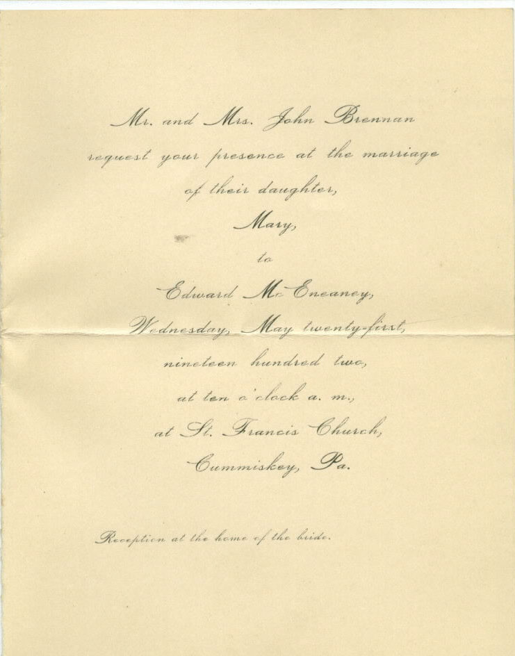 invitation must have been hand delivered. Both Edward and Mary (Brennan) McEneany are listed below in the interment