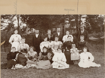 a guild meeting at the home of John Streby in 1898. We do not know which guild was meeting or picnicking there.