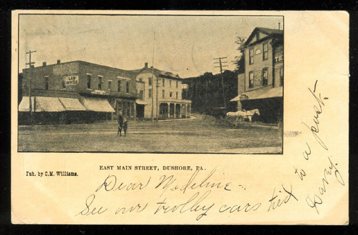 Dushore Original postcard photo sold on eBay in October 2019. The restsursnt snd Mobil gas station were owned and