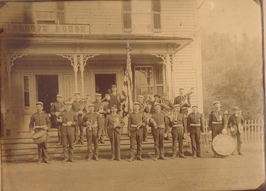 a guild meeting at the home of John Streby in 1898. We do not know which guild was meeting or picnicking there.