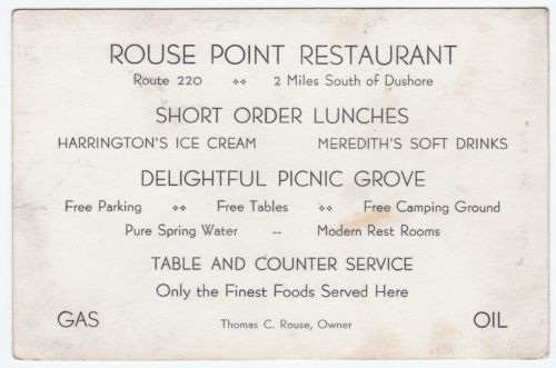 Rouse Point Restaurant 1920s Route 220 Two Miles South of