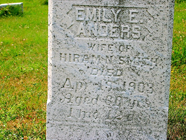 Hiram was killed when a large log jumped out of the water flume while they were lumbering wood in Nordmont.Twelve years later Grandmother Emily married John H. Andrews (pronounced in Nordmont as�ANDERS� and is so listed on her tombstone.