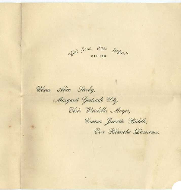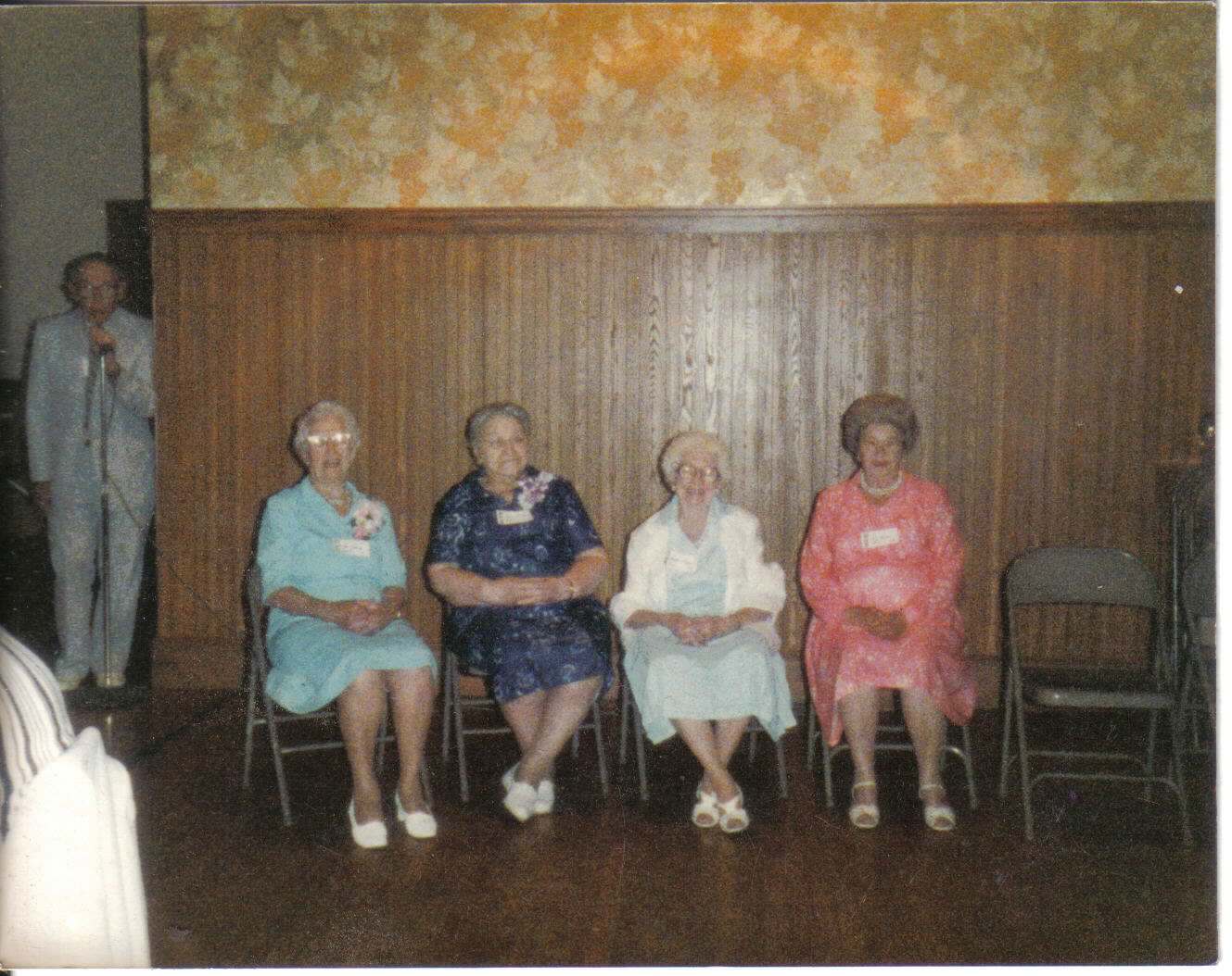 Bottom, l to r: Pearl Spencer, Ellen Shefler, Loretta (O'Neill) Price-1917 and Alice (Mosier) Tice-1920