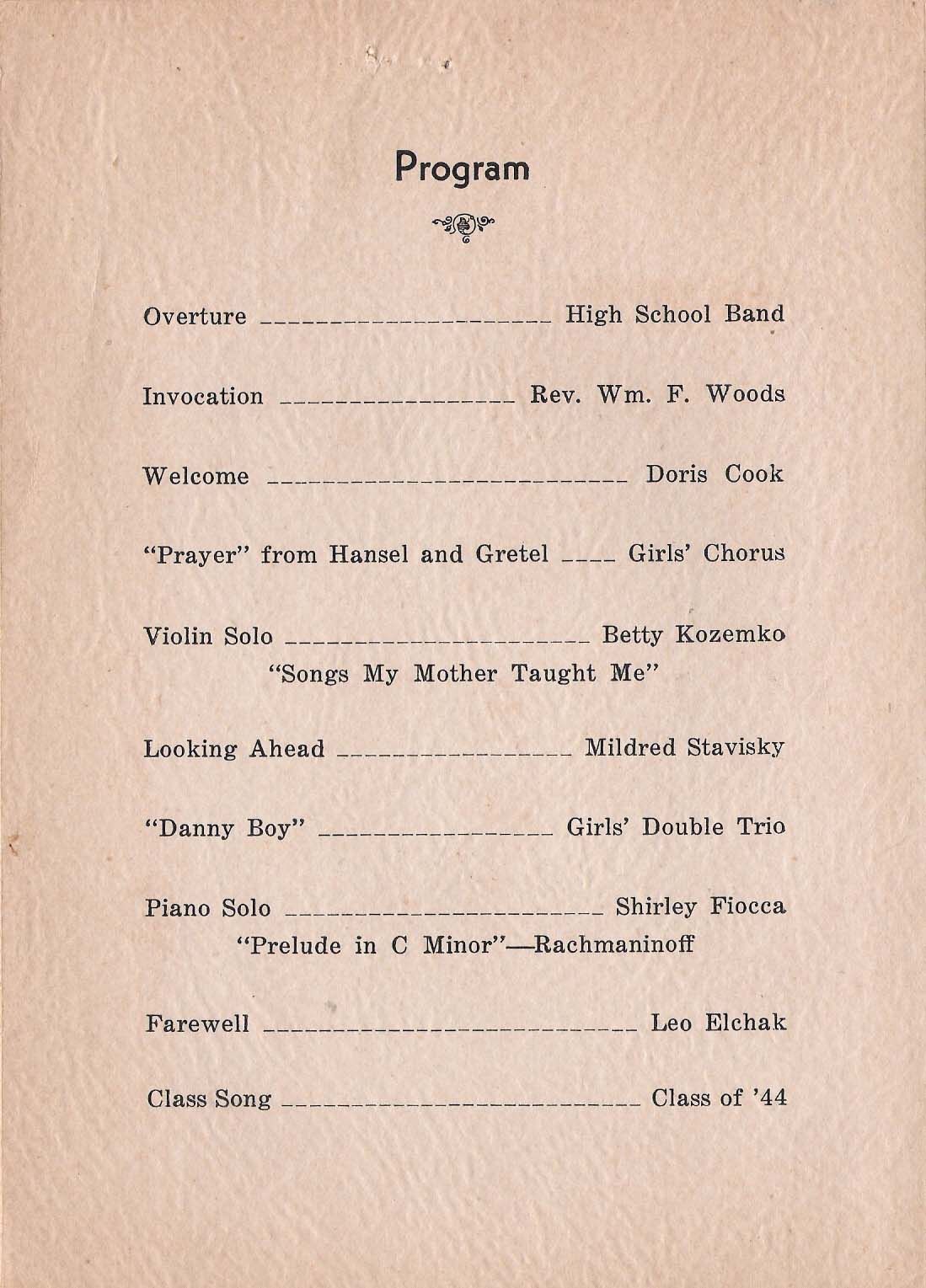 Forty-Sixth Dushore High School Commencement Program: 1944: