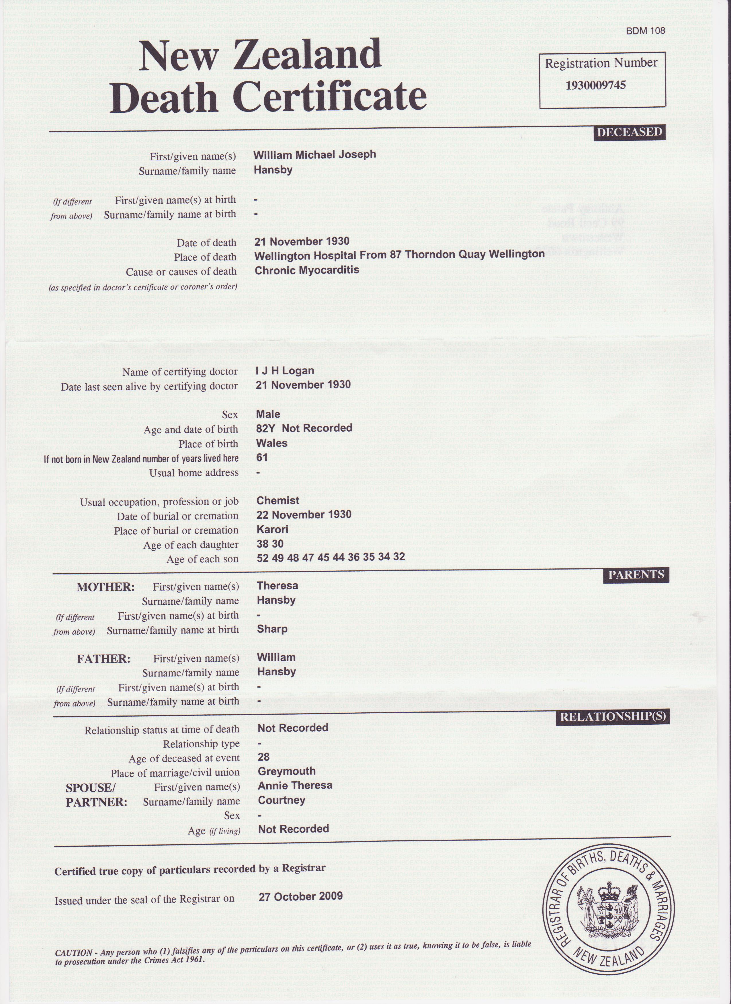 My name is David Morley, my mother is Joy Morley (nee Hansby). Her father is Thomas Cyril Hoskin